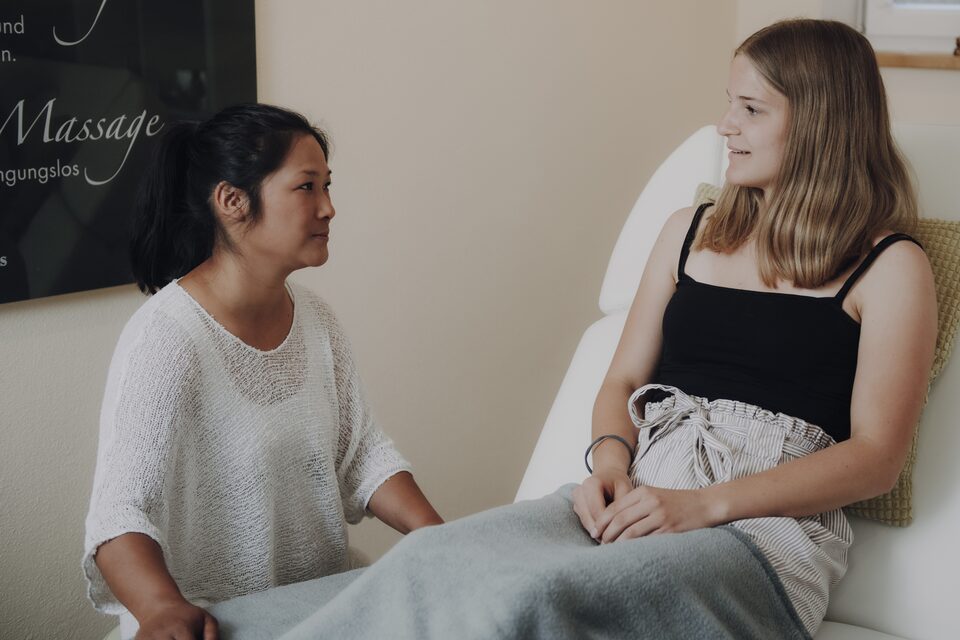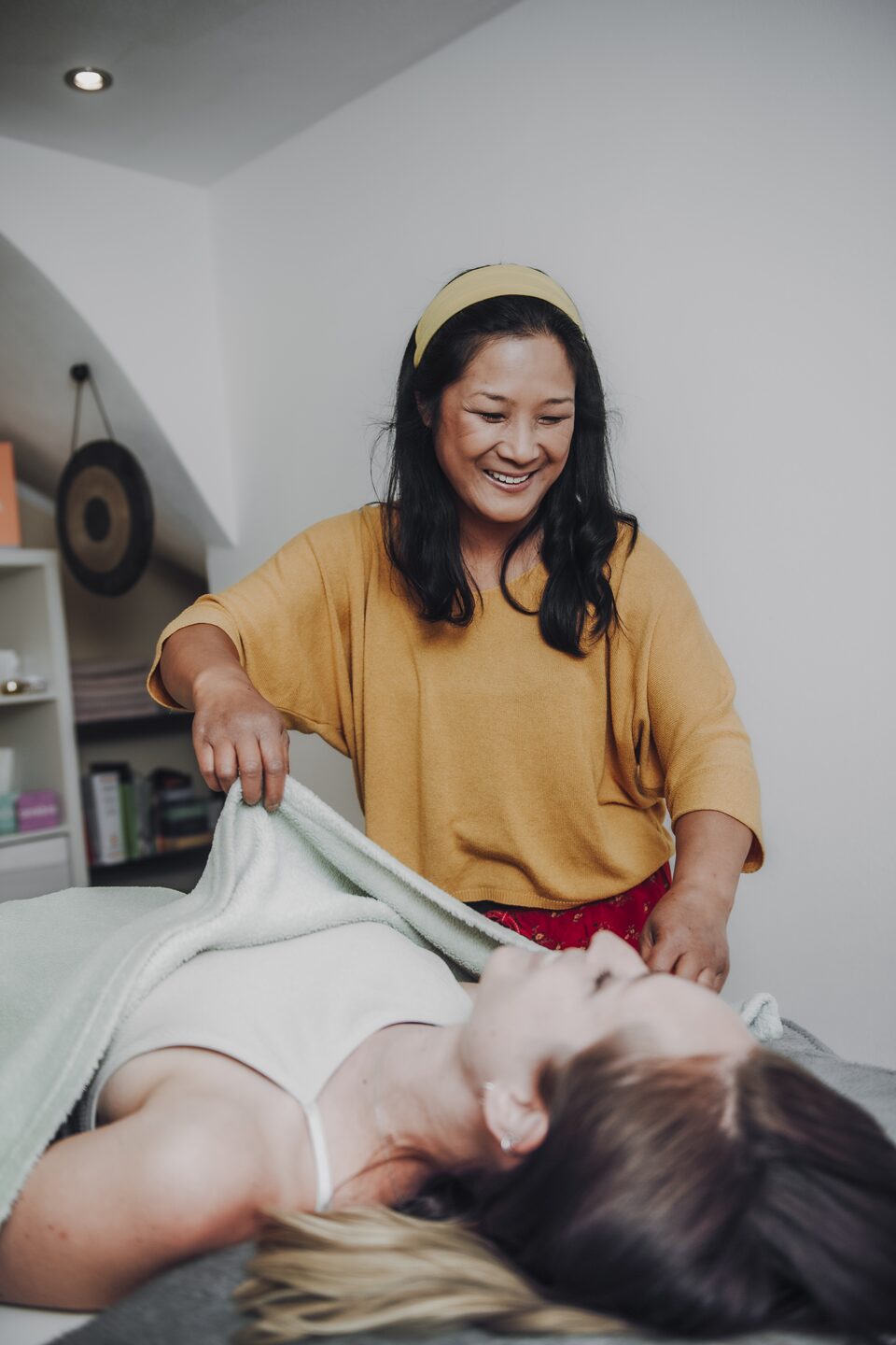 Gerne kombiniere ich eine solche Behandlung mit einer vorausgehenden Massage auf meiner beheizten Liege und verhelfe meinen Klient*innen damit zu einem entspannten Einstieg in meine Behandlung.